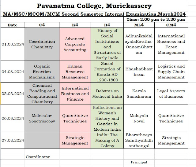 ๐First internal examinations time table for PG programmes. Please give this schedule to students and prepare the question papers for the exam (1hr duration). We can take classes for the remaining hours on examination days.
